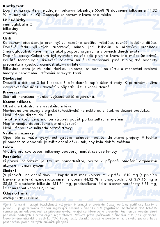 Doplněk stravy, který je zdrojem bílkovin (obsahuje 55,68 % sloučenin bílkovin a 44,32 % imunoglobulinu G). Obsahuje kolostrum z kravského mléka.