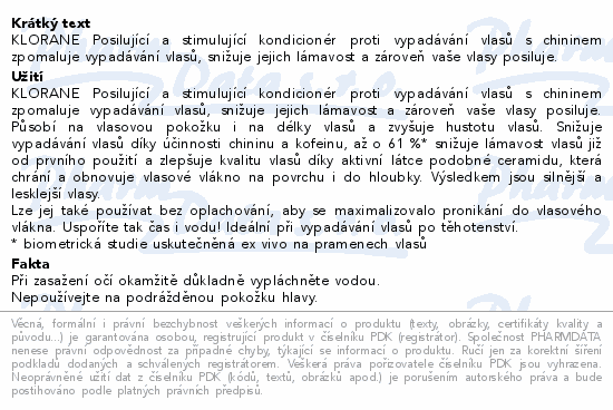 KLORANE Posilující a stimulující kondicionér proti vypadávání vlasů s chininem zpomaluje vypadávání vlasů, snižuje jejich lámavost a zároveň vaše vlasy posiluje.