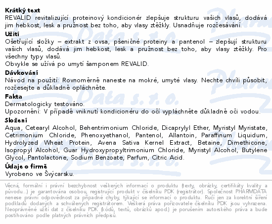 REVALID revitalizující proteinový kondicionér zlepšuje strukturu vašich vlasů, dodává jim hebkost, lesk a pružnost bez toho, aby vlasy ztěžkly. Usnadňuje rozčesávání.
