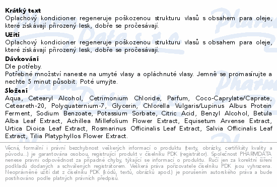 Oplachový kondicioner regeneruje poškozenou strukturu vlasů s obsahem para oleje, které získávají přirozený lesk, dobře se pročesávají.