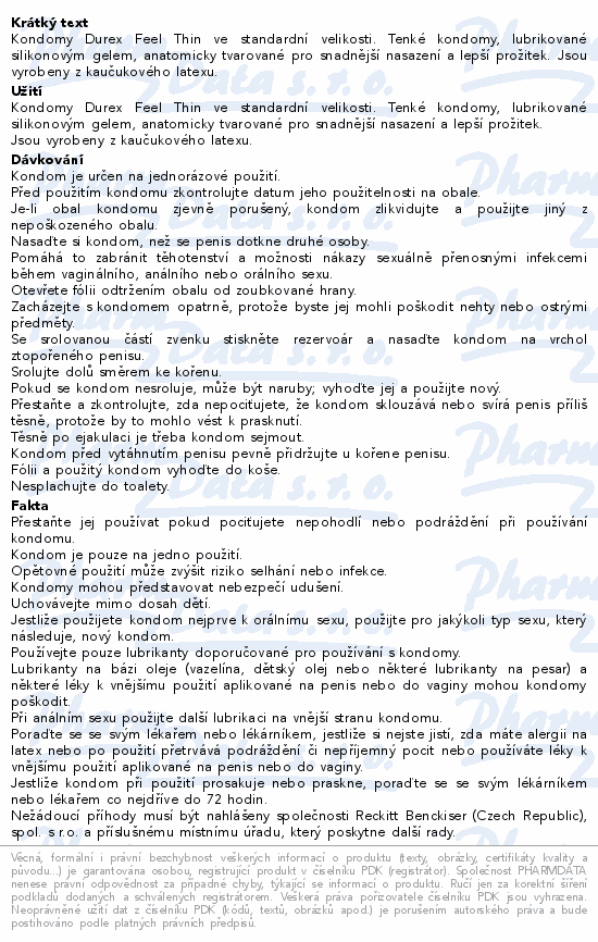 Kondomy Durex Feel Thin ve standardní velikosti. Tenké kondomy, lubrikované silikonovým gelem, anatomicky tvarované pro snadnější nasazení a lepší prožitek. Jsou vyrobeny z kaučukového latexu.
