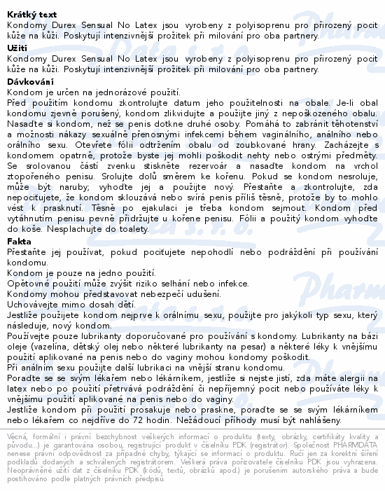 Kondomy Durex Sensual No Latex jsou vyrobeny z polyisoprenu pro přirozený pocit kůže na kůži. Poskytují intenzivnější prožitek při milování pro oba partnery.