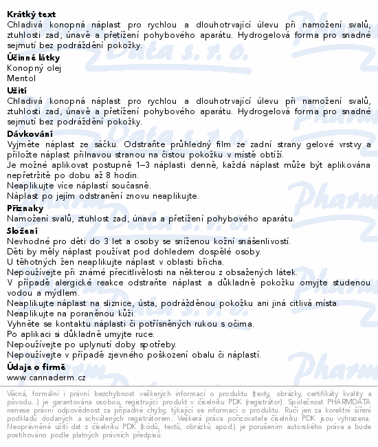 Chladivá konopná náplast pro rychlou a dlouhotrvající úlevu při namožení svalů, ztuhlosti zad, únavě a přetížení pohybového aparátu. Hydrogelová forma pro snadné sejmutí bez podráždění pokožky.