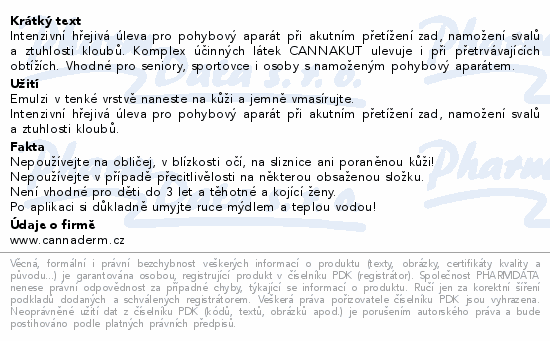 Intenzivní hřejivá úleva pro pohybový aparát při akutním přetížení zad, namožení svalů a ztuhlosti kloubů. Komplex účinných látek CANNAKUT ulevuje i při přetrvávajících obtížích. Vhodné pro seniory, sportovce i osoby s namoženým pohybový aparátem.