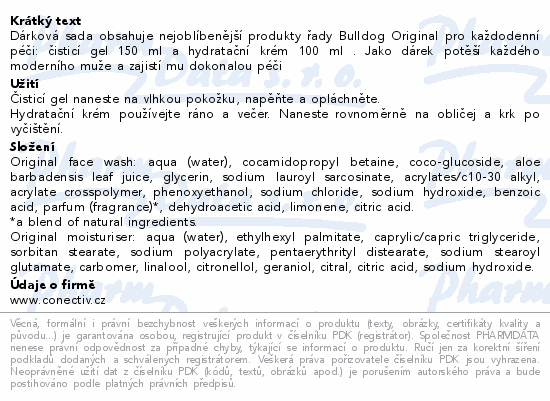Dárková sada obsahuje nejoblíbenější produkty řady Bulldog Original pro každodenní péči: čisticí gel 150 ml a hydratační krém 100 ml . Jako dárek potěší každého moderního muže a zajistí mu dokonalou péči