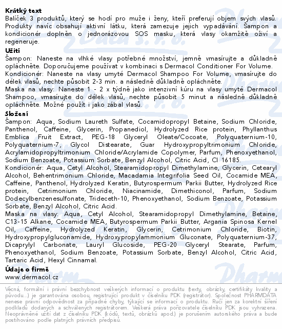 Balíček 3 produktů, který se hodí pro muže i ženy, kteří preferují objem svých vlasů. Produkty navíc obsahují aktivní látku, která zamezuje jejich vypadávání. Šampon a kondicionér doplněn o jednorázovou SOS masku, která vlasy okamžitě oživí a regeneruje.