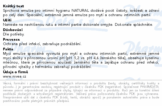 Sprchová emulze pro intimní hygienu NATURAL dodává pocit čistoty, svěžesti a zdraví po celý den. Speciální, extrémně jemná emulze pro mytí a ochranu intimních partií.