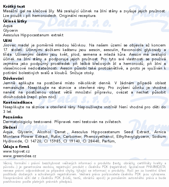 Masážní gel na křečové žíly. Má zesilující účinek na žilní stěny a zvyšuje jejich pružnost. Lze použít i při hemoroidech. Originální receptura.