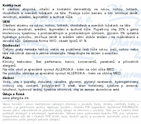 ALLERGIKA krém s pupalkovým olejem 20% MED 100ml