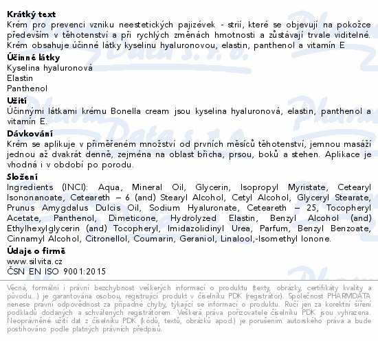 Krém pro prevenci vzniku neestetických pajizévek - strií, které se objevují na pokožce především v těhotenství a při rychlých změnách hmotnosti a zůstávají trvale viditelné. Krém obsahuje účinné látky kyselinu hyaluronovou, elastin, panthenol a vitamín E