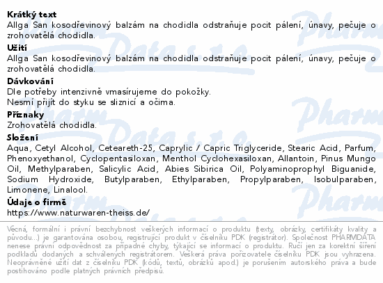 Allga San kosodřevinový balzám na chodidla odstraňuje pocit pálení, únavy, pečuje o zrohovatělá chodidla.