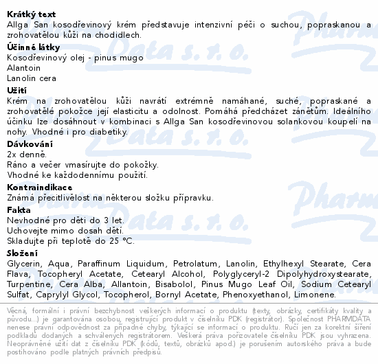 Allga San kosodřevinový krém představuje intenzivní péči o suchou, popraskanou a zrohovatělou kůži na chodidlech.