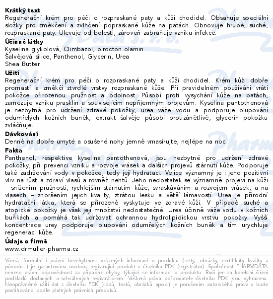 Regenerační krém pro péči o rozpraskané paty a kůži chodidel. Obsahuje speciální složky pro změkčení a zvlhčení popraskané kůže na patách. Obnovuje hrubé, suché, rozpraskané paty. Ulevuje od bolesti, zároveň zabraňuje vzniku infekce.