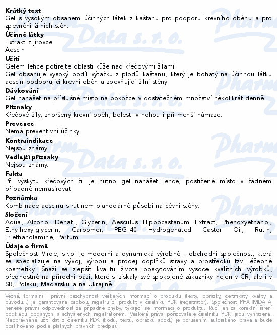 Gel s vysokým obsahem účinných látek z kaštanu pro podporu krevního oběhu a pro zpevnění žilních stěn.