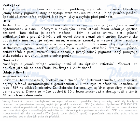 SESDERMA AZELAC hydratační krém na akné 50ml