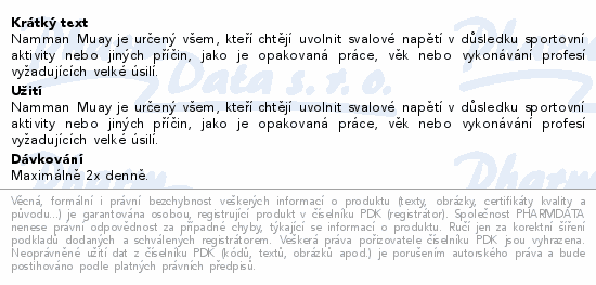 Namman Muay je určený všem, kteří chtějí uvolnit svalové napětí v důsledku sportovní aktivity nebo jiných příčin, jako je opakovaná práce, věk nebo vykonávání profesí vyžadujících velké úsilí.