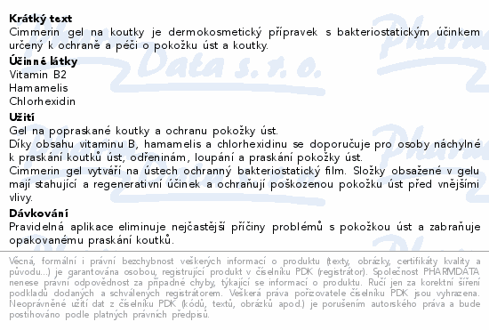 Cimmerin gel na koutky je dermokosmetický přípravek s bakteriostatickým účinkem určený k ochraně a péči o pokožku úst a koutky.