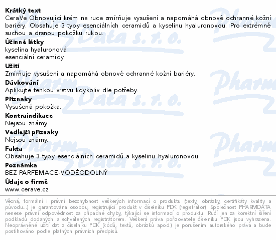 CeraVe Obnovující krém na ruce zmírňuje vysušení a napomáhá obnově ochranné kožní bariéry. Obsahuje 3 typy esenciálních ceramidů a kyselinu hyaluronovou. Pro extrémně suchou a drsnou pokožku rukou.