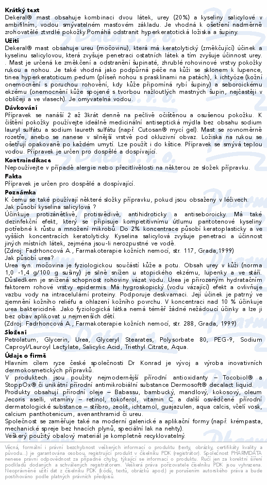 Kombinace dvou účinných látek, urey (20%) a kyseliny salicylové v ambifilním, vodou smývatelném masťovém základu. Je vhodná k ošetření nadměrně zrohovatělé ztvrdlé pokožky. Změkčuje ztluštělou kůži a pomáhá odstranit hyperkeratotická ložiska a šupiny.