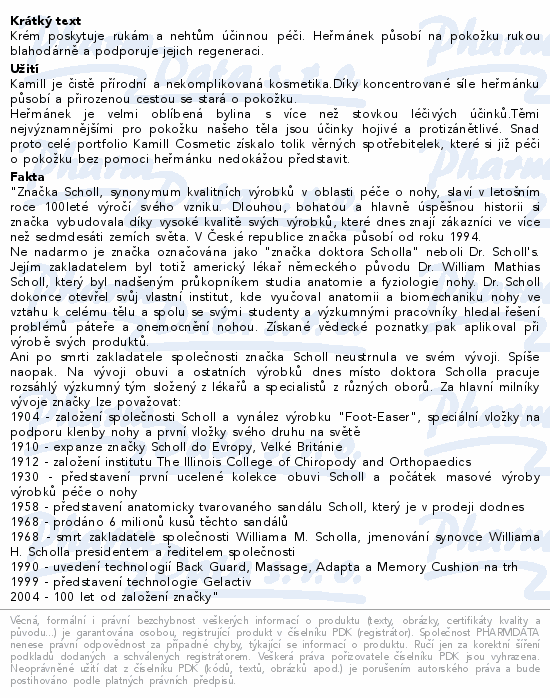 Krém poskytuje rukám a nehtům účinnou péči. Heřmánek působí na pokožku rukou blahodárně a podporuje jejich regeneraci.