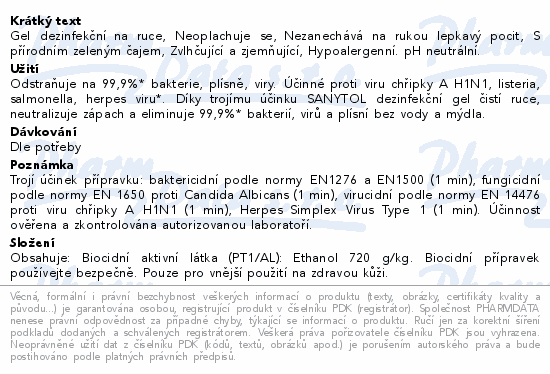 Gel dezinfekční na ruce, Neoplachuje se, Nezanechává na rukou lepkavý pocit, S přírodním zeleným čajem, Zvlhčující a zjemňující, Hypoalergenní. pH neutrální.