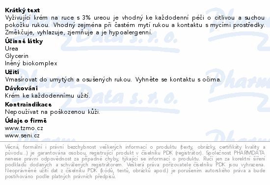 Vyživující krém na ruce s 3% ureou je vhodný ke každodenní péči o citlivou a suchou pokožku rukou. Vhodný zejména při častém mytí rukou a kontaktu s mycími prostředky. Změkčuje, vyhlazuje, zjemňuje a je hypoalergenní.