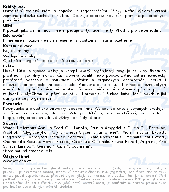 Univerzální rodinný krém s hojivými a regeneračními účinky. Krém výborně chrání zejména pokožku suchou či hrubou. Ošetřuje popraskanou kůži, pomáhá při drobných poraněních.