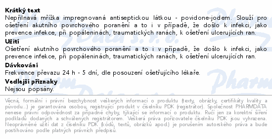Nepřilnavá mřížka impregnovaná antiseptickou látkou - povidone-jodem. Slouží pro ošetření akutního povrchového poranění a to i v případě, že došlo k infekci, jako prevence infekce, při popáleninách, traumatických ranách, k ošetření ulcerujících ran.