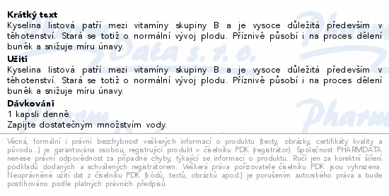 Kyselina listová patří mezi vitamíny skupiny B a je vysoce důležitá především v těhotenství. Stará se totiž o normální vývoj plodu. Příznivě působí i na proces dělení buněk a snižuje míru únavy.