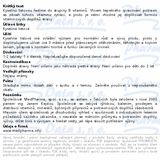 Kyselinu listovou řadíme do skupiny B vitaminů. Vlivem tepelného zpracování potravin se obsah tohoto vitaminu vytrácí, a proto je velmi vhodné jej doplňovat formou vitaminových doplňků stravy.