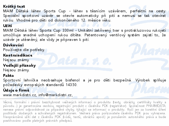 MAM Dětská láhev Sports Cup - láhev s těsnícím uzávěrem, perfektní na cesty. Speciální sportovní uzávěr se otevře automaticky při pití a nemusí se tak otevírat rukou. Vhodné pro děti od dokončeného 12. měsíce věku.