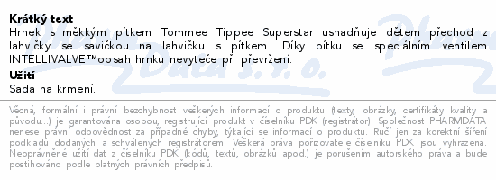 Hrnek s měkkým pítkem Tommee Tippee Superstar usnadňuje dětem přechod z lahvičky se savičkou na lahvičku s pítkem. Díky pítku se speciálním ventilem INTELLIVALVE™obsah hrnku nevyteče při převržení.