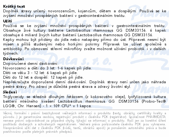 Doplněk stravy určený novorozencům, kojencům, dětem a dospělým. Používá se ke zvýšení množství prospěšných bakterií v gastrointestinálním traktu.