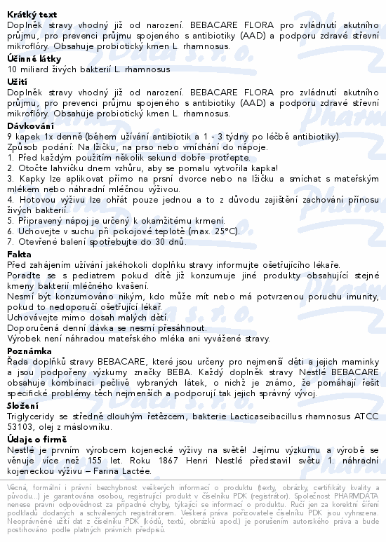 Doplněk stravy vhodný již od narození. BEBACARE FLORA pro zvládnutí akutního průjmu, pro prevenci průjmu spojeného s antibiotiky (AAD) a podporu zdravé střevní mikroflóry. Obsahuje probiotický kmen L. rhamnosus.