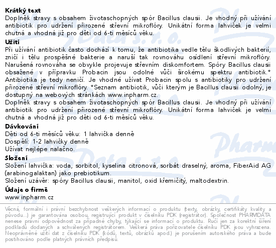 Doplněk stravy s obsahem životaschopných spór Bacillus clausii. Je vhodný při užívání antibiotik pro udržení přirozené střevní mikroflóry. Unikátní forma lahviček je velmi chutná a vhodná již pro děti od 6-ti měsíců věku.