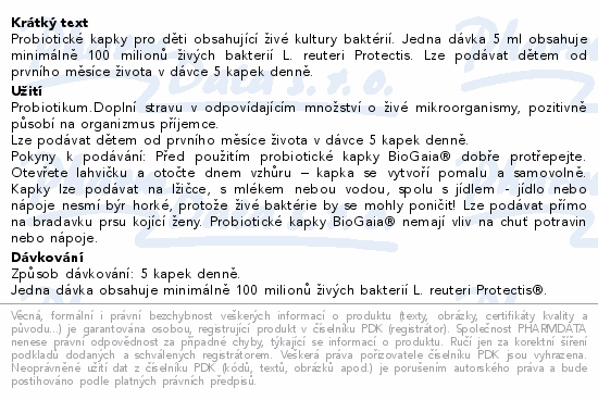 Probiotické kapky pro děti obsahující živé kultury baktérií. Jedna dávka 5 ml obsahuje minimálně 100 milionů živých bakterií L. reuteri Protectis. Lze podávat dětem od prvního měsíce života v dávce 5 kapek denně.