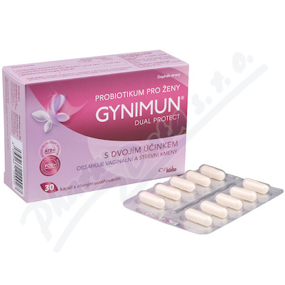 GYNIMUN DUAL PROTECT obsahuje tři vybrané patentované kmeny humánních laktobacilů, které pomáhají obnovit harmonii přirozené střevní a vaginální mikroflóry. Pomáhá při bakteriální vaginóze a předchází jí. Obnovuje a udržuje zdravou vaginální flóru.
