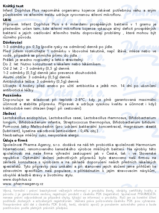 Infant Dophilus Plus napomáhá organismu kojence získávat potřebnou váhu a svým působením ve střevním traktu udržuje vyrovnanou střevní mikrofloru.