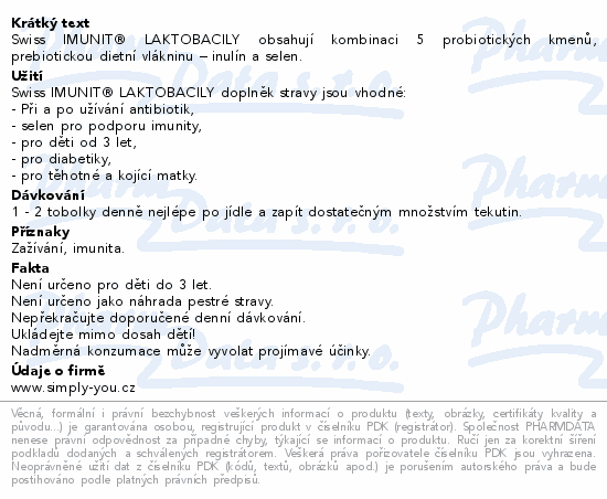 Swiss IMUNIT® LAKTOBACILY obsahují kombinaci 5 probiotických kmenů, prebiotickou dietní vlákninu – inulín a selen.