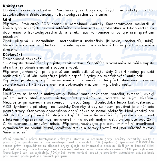 Doplněk stravy s obsahem Saccharomyces boulardii, živých probiotických kultur Lactobacillus a Bifidobacterium, fruktooligosacharidů a zinku.