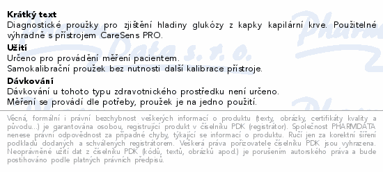 Diagnostické proužky pro zjištění hladiny glukózy z kapky kapilární krve. Použitelné výhradně s přístrojem CareSens PRO.