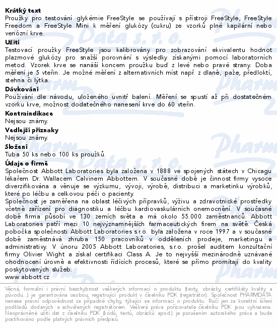 Proužky pro testování glykémie FreeStyle se používají s přístroji FreeStyle, FreeStyle Freedom a FreeStyle Mini k měření glukózy (cukru) ze vzorků plné kapilární nebo venózní krve.