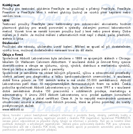 Proužky pro testování glykémie FreeStyle se používají s přístroji FreeStyle, FreeStyle Freedom a FreeStyle Mini k měření glukózy (cukru) ze vzorků plné kapilární nebo venózní krve.