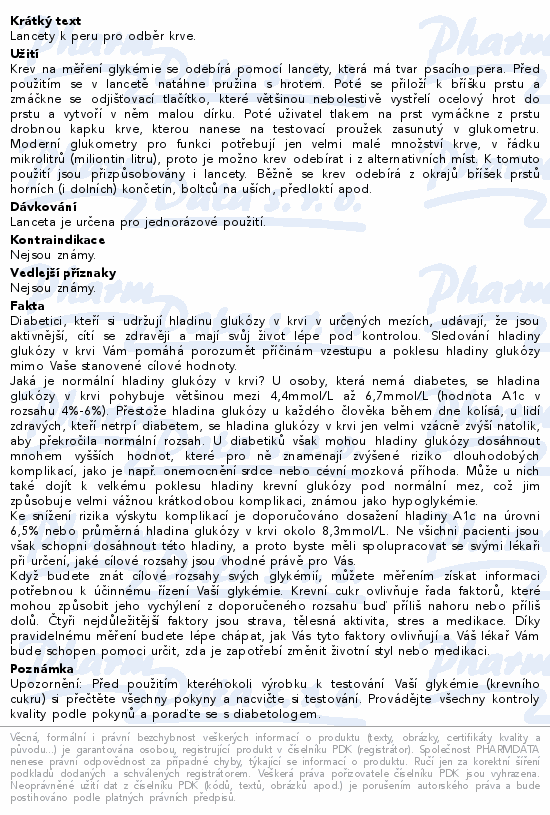Lanceta pro odběr krve jednoraz.100ks