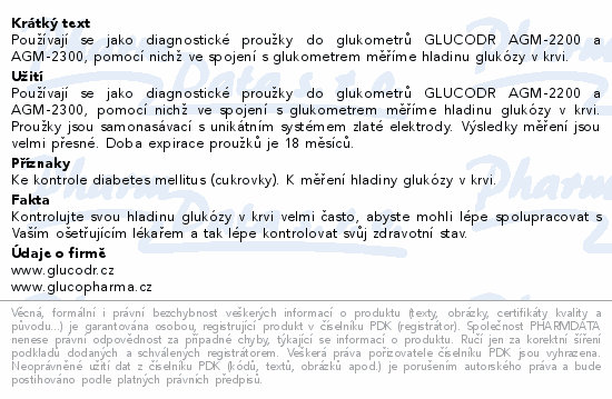 Používají se jako diagnostické proužky do glukometrů GLUCODR AGM-2200 a AGM-2300, pomocí nichž ve spojení s glukometrem měříme hladinu glukózy v krvi.
