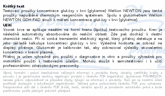 Testovací proužky koncentrace glukózy v krvi (glykemie) Wellion NEWTON jsou tenké proužky napuštěné chemickým reagenčním systémem. Spolu s glukometrem Wellion NEWTON GDH-FAD slouží k měření koncentrace glukózy v krvi (glykemie).