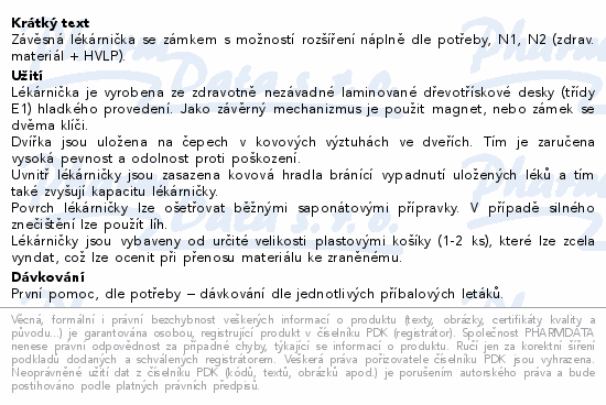 Závěsná lékárnička se zámkem s možností rozšíření náplně dle potřeby, N1, N2 (zdrav. materiál + HVLP).