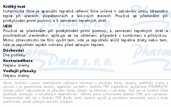 Izotermická fólie je speciální tepelně reflexní fólie určená k zabránění úniku tělesného tepla při úrazech, popáleninách a šokových stavech. Používá se především při poskytování první pomoci a k zamezení tepelných ztrát.