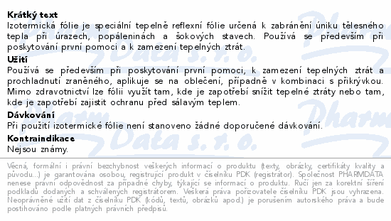 Izotermická fólie je speciální tepelně reflexní fólie určená k zabránění úniku tělesného tepla při úrazech, popáleninách a šokových stavech. Používá se především při poskytování první pomoci a k zamezení tepelných ztrát.