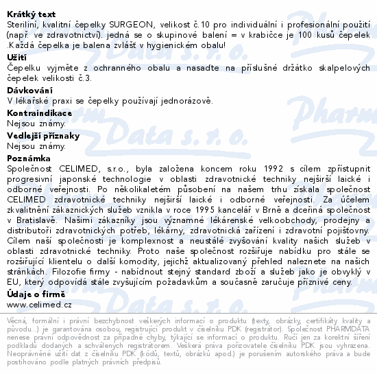 Steriliní, kvalitní čepelky SURGEON, velikost č.10 pro individuální i profesionální použití (např. ve zdravotnictví). jedná se o skupinové balení = v krabičce je 100 kusů čepelek .Každá čepelka je balena zvlášť v hygienickém obalu!